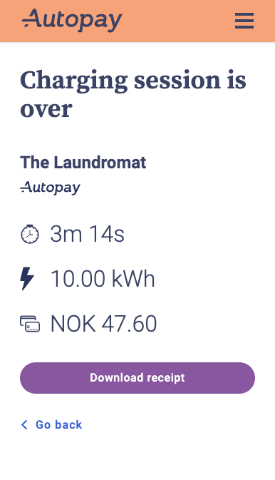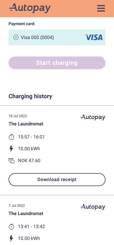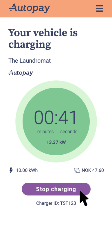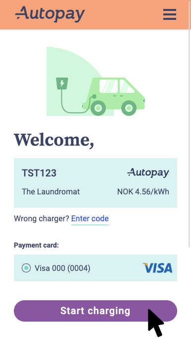 Charge using our app "Autopay Park & Charge" or via autopay.io/ev-charging