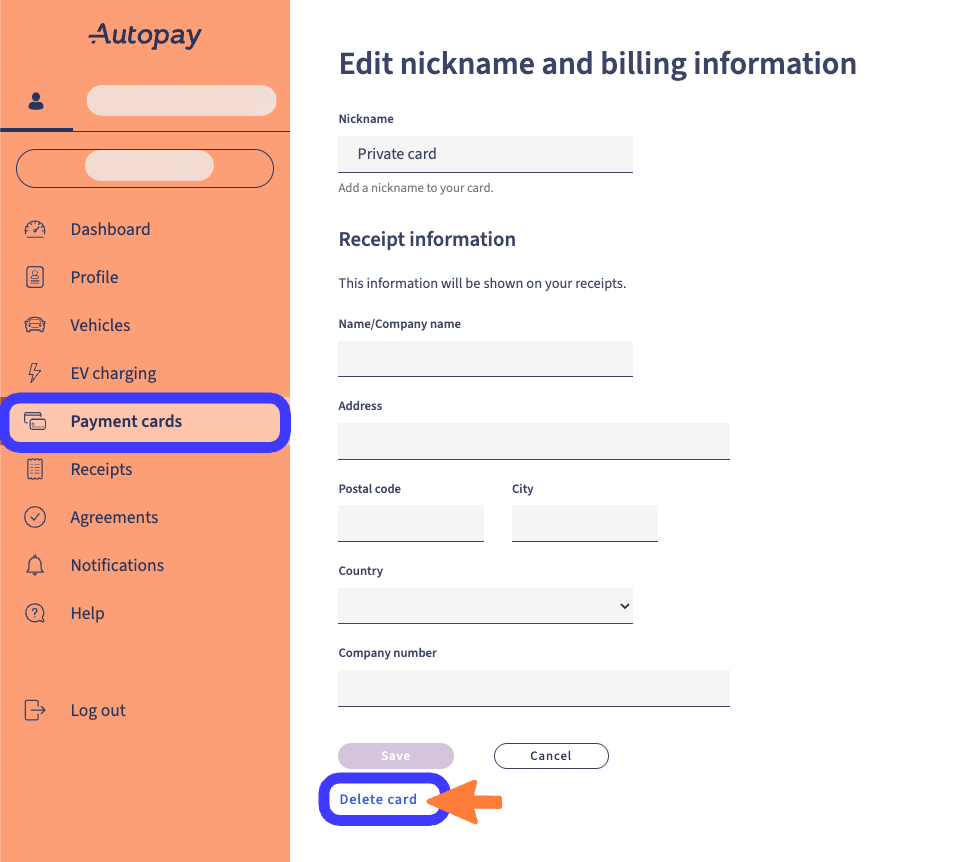 Delete a payment card