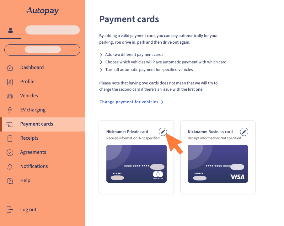 Edit nickname and billing information