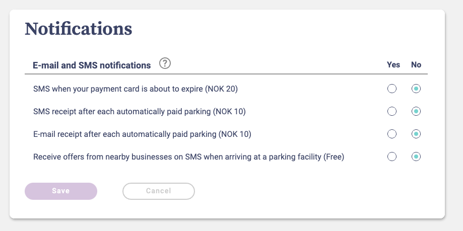 Notification costs are charged to your registered payment card.