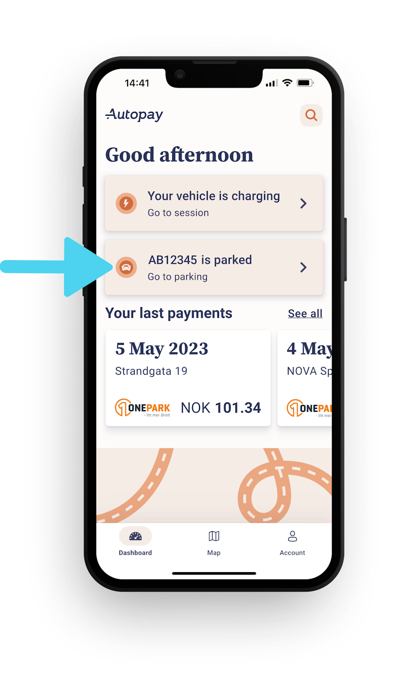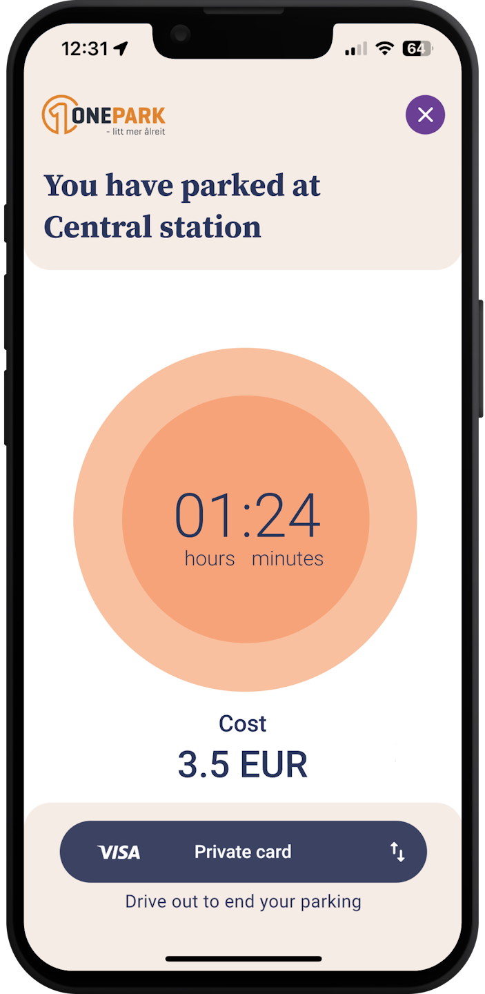 In our App, users can view their ongoing parking sessions after entering a parking location with camera-based parking.