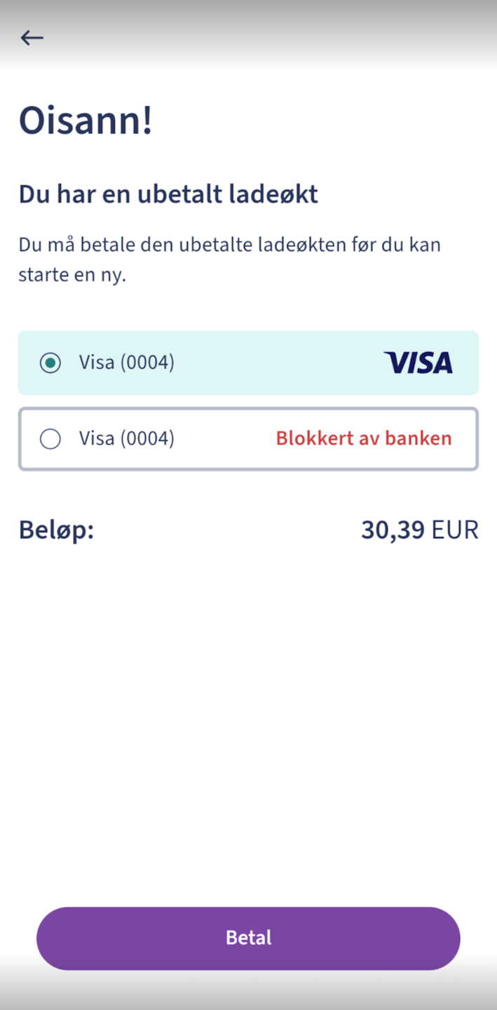 If your registered card was previously blocked or becomes blocked when ending an EV charging session, and the payment does not go through, follow these user flows to complete the payment: