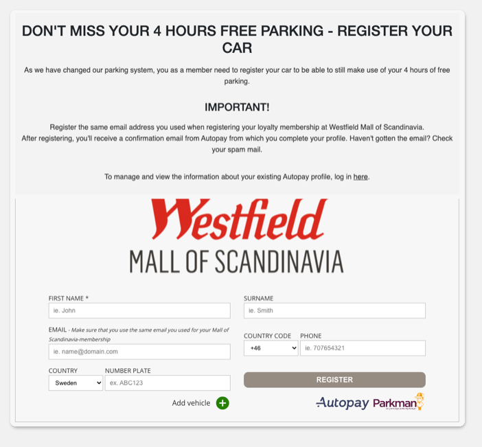 Then scroll down until you see Register your car – click on that.