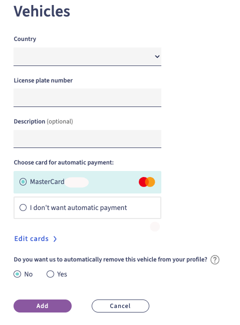 Adding vehicles to your profile