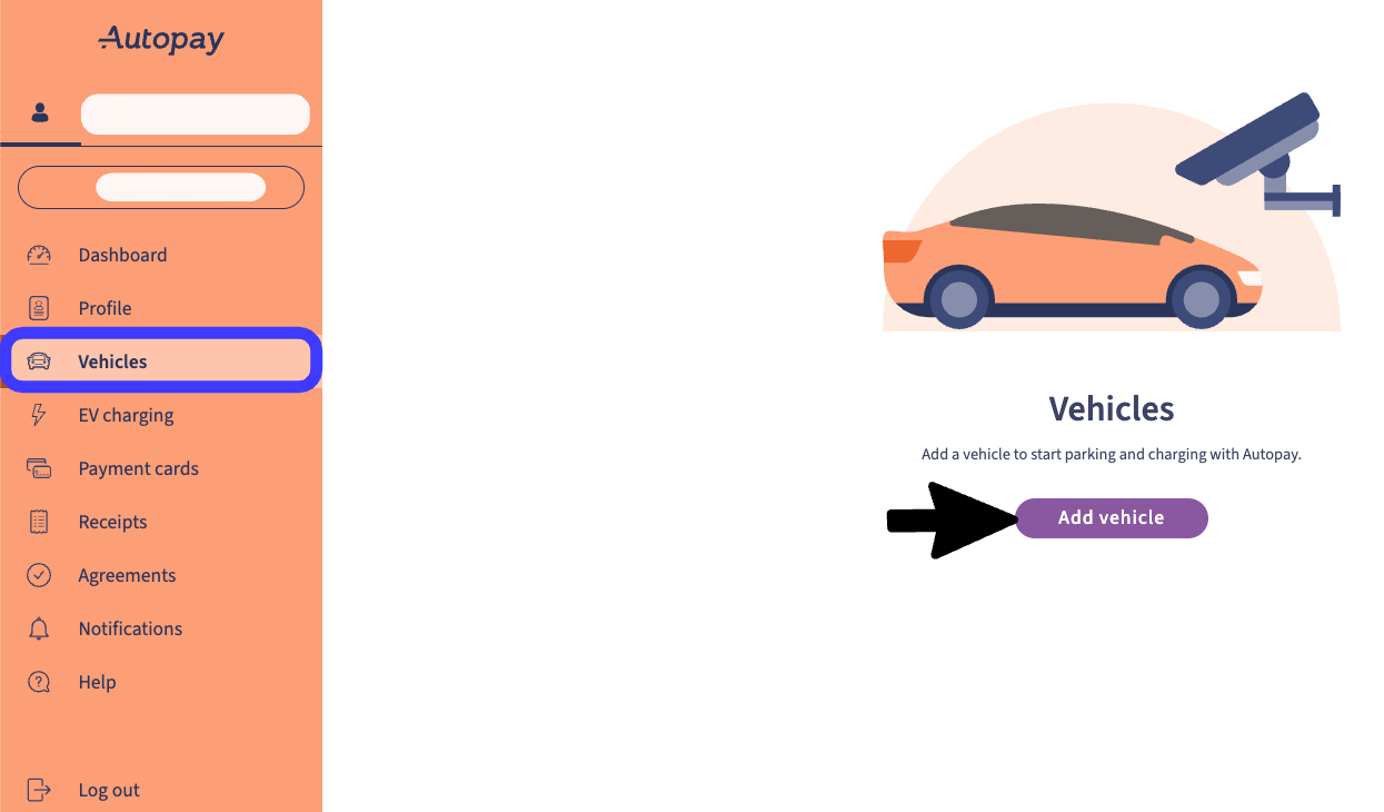 Log in to your account and select 'Vehicles' from the menu