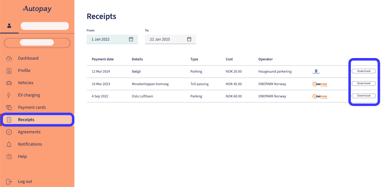 Go to Receipts in you Autopay profile.
