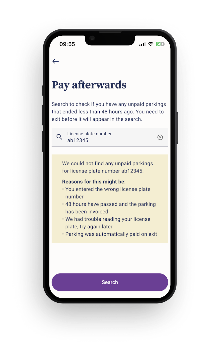 Customers have the flexibility to pay for parking or toll road passings up to 48 hours after exit directly in the app. Additionally, we've added more feedback if no unpaid sessions are displayed.